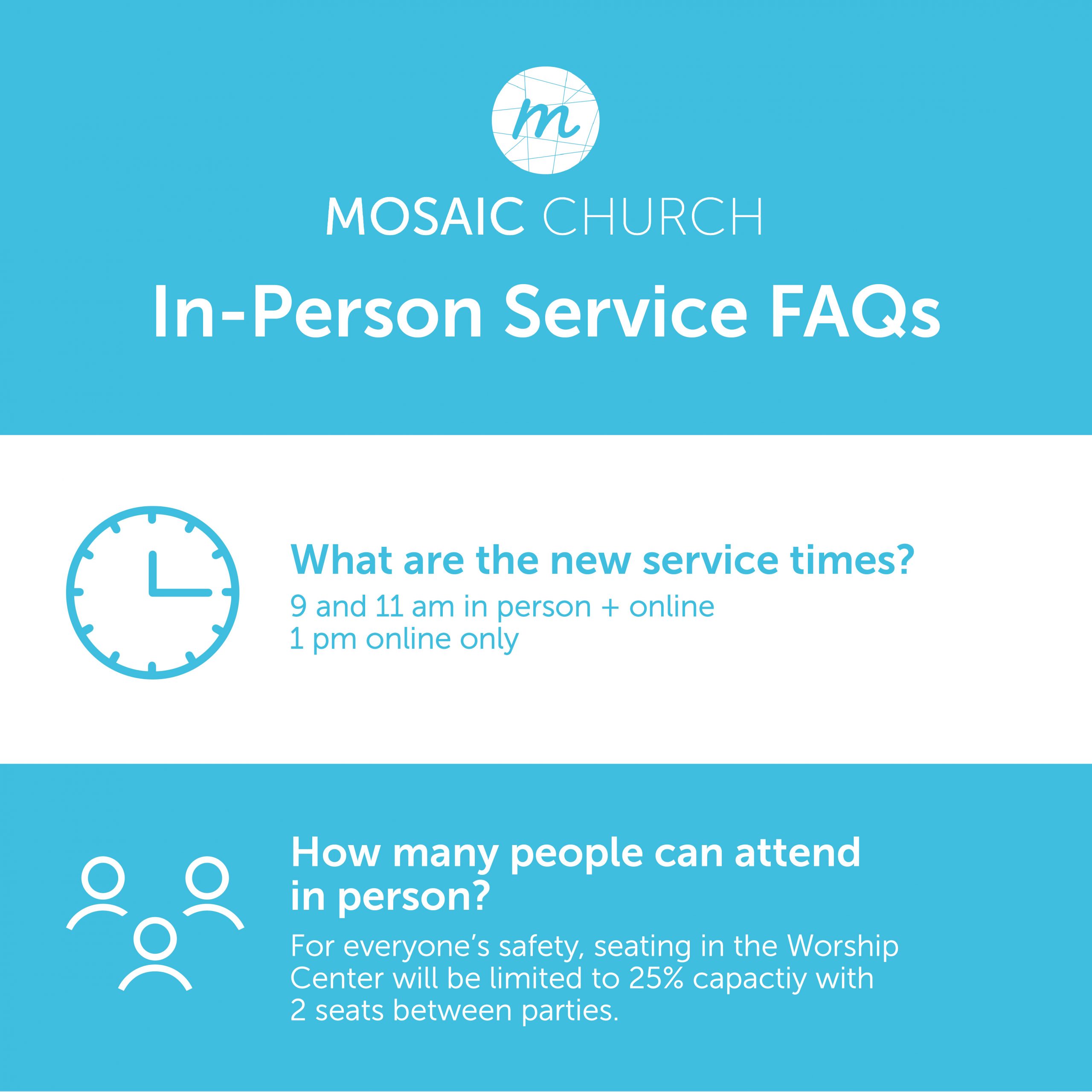 Join us in person for service at 8:30 am, 10 am or 11:30 am at Mosaic North.